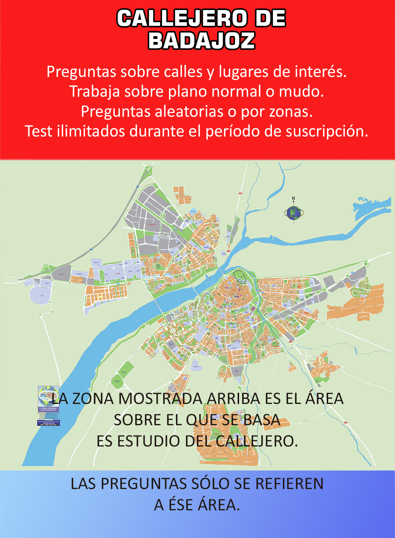 Callejero de Badajoz para estudiar el callejero de tu oposición, licencia de Taxi o cualquier otra necesidad.