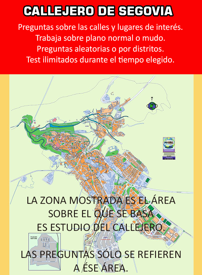 Callejero de Segovia para estudiar el callejero de tu oposición, licencia de Taxi o cualquier otra necesidad.