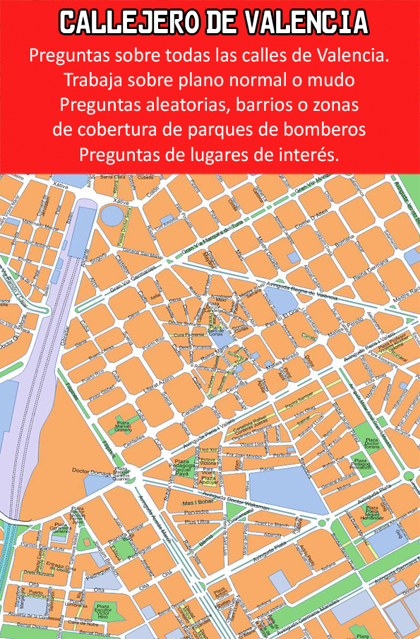 Callejero de Valencia para estudiar el callejero de tu oposición, licencia de Taxi o cualquier otra necesidad.