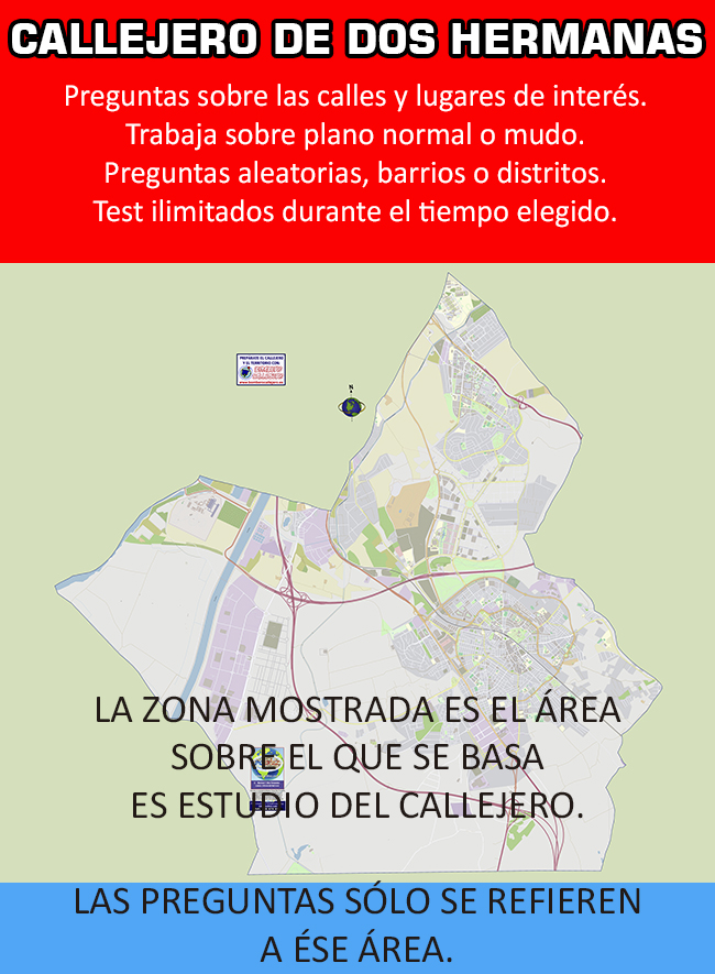 Callejero de Dos Hermanas para estudiar el callejero de tu oposición a Bombero, cualquier otra oposición o licencia de Taxi.