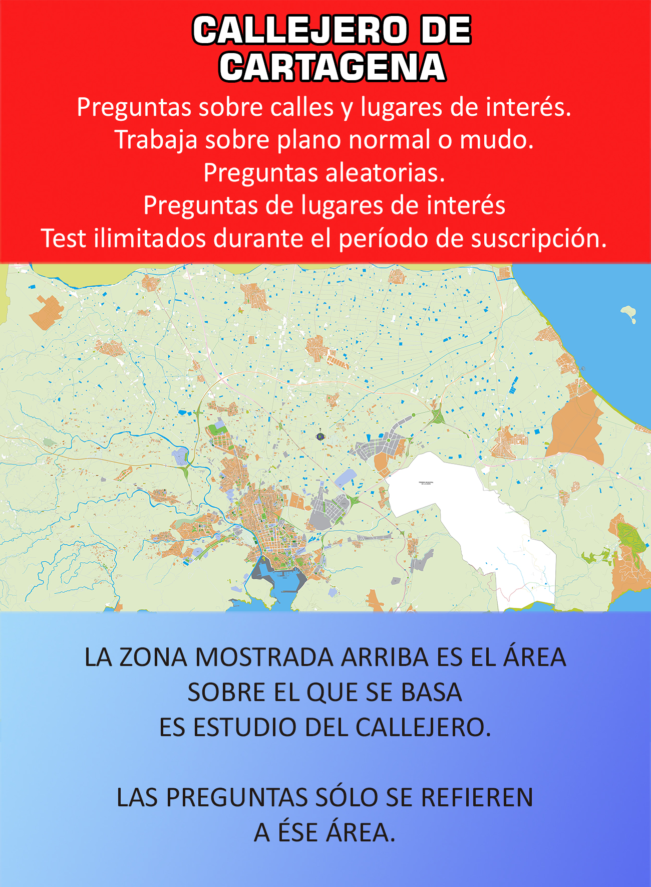 Callejero de Cartagena para estudiar el callejero de tu oposición, licencia de Taxi o cualquier otra necesidad.
