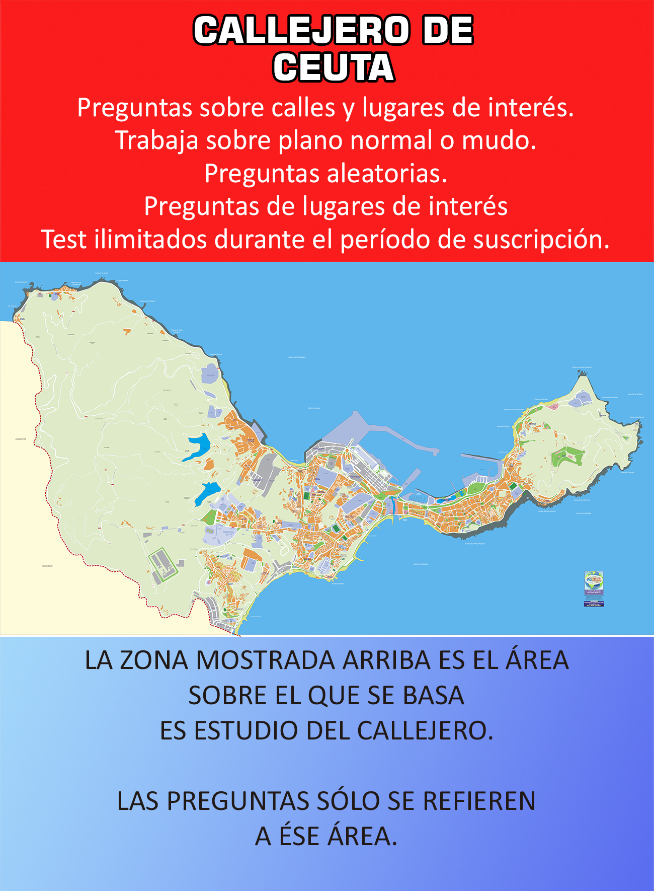 Callejero de Ceuta para estudiar el callejero de tu oposición, licencia de Taxi o cualquier otra necesidad.