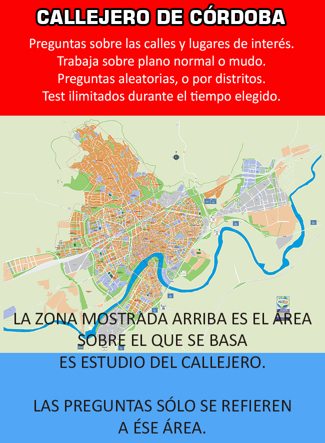 Callejero de Córdoba para estudiar el callejero de tu oposición, licencia de Taxi o cualquier otra necesidad.