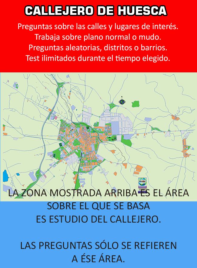 Callejero de Huesca para estudiar el callejero de tu oposición, licencia de Taxi o cualquier otra necesidad.