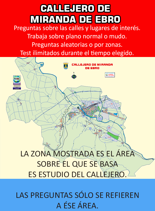 Callejero de Miranda de Ebro para estudiar el callejero de tu oposición, licencia de Taxi o cualquier otra necesidad.