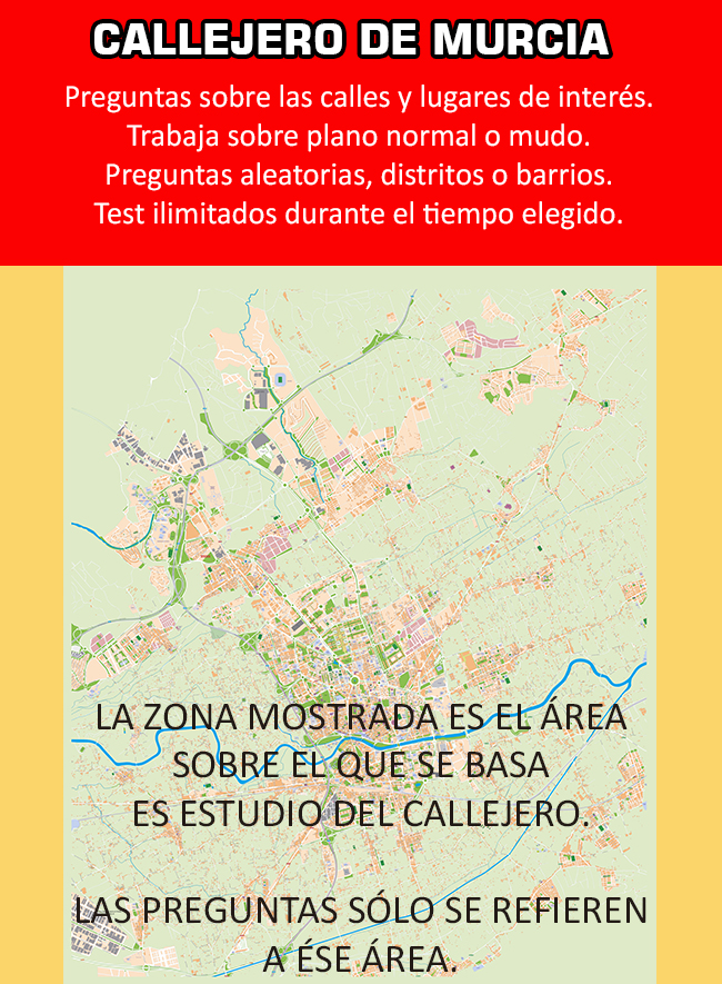 Callejero de Murcia para estudiar el callejero de tu oposición, licencia de Taxi o cualquier otra necesidad.