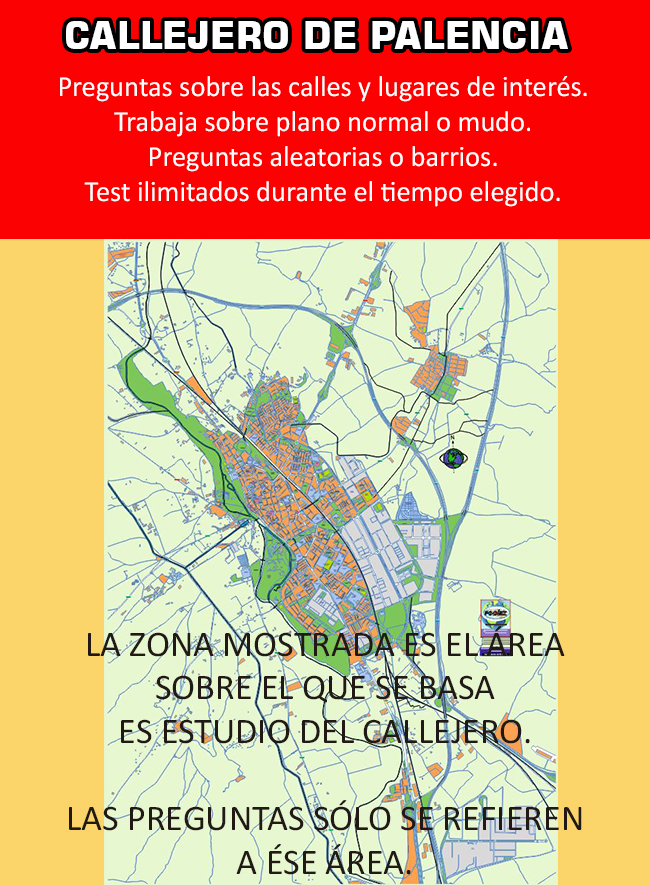 Callejero de Palencia para estudiar el callejero de tu oposición, licencia de Taxi o cualquier otra necesidad.
